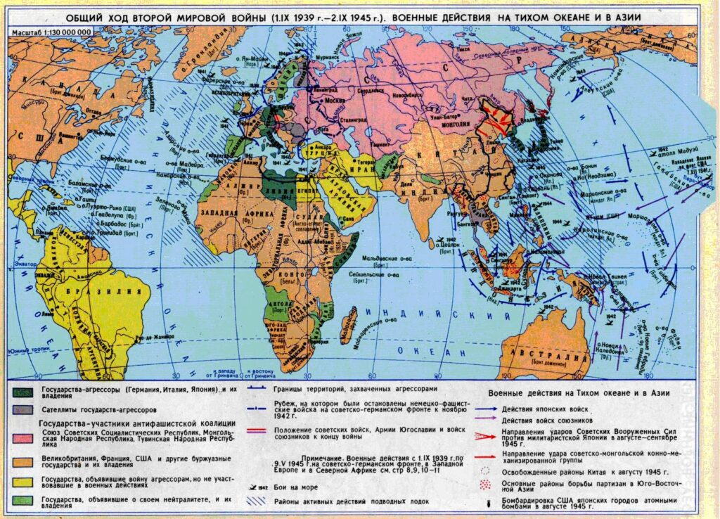 В ней приняло участие 61 государство мира, на территории которых проживало 80 % населения Земли. Военные действия велись на всех океанах, в Евразии, Африке и Океании. В армии воевавших стран было призвано 110 млн. человек.