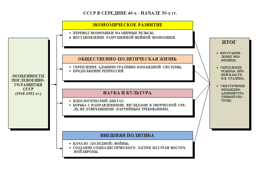 Ужесточение режима. После окончания войны был взят курс на восстановление довоенных репрессивных порядков в стране. В этих целях значительная часть репатриированных военнопленных вместо возвращения домой были отправлены в лагеря или привлечены к работам по восстановлению разоренных войной районов.