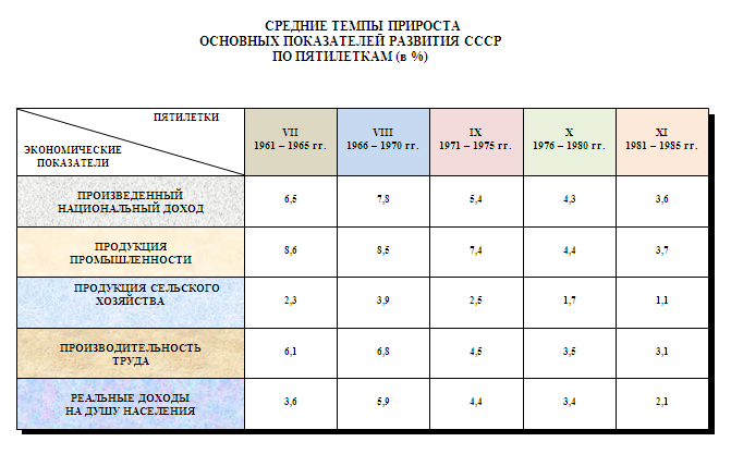 Однако в 1970-х – середине 1980-х годов стало заметно падение темпов роста. Ссылаясь на это в общественное сознание был вброшен термин «застой».Был спад, но не застой! Тем не менее падение темпов экономического роста было использовано противниками социализма для того, чтобы характеризовать ситуацию в советской экономике с середины 1960-х годов как критическую, что дало повод приклеить ярлык «застоя» брежневскому периоду, хотя это не соответствовало действительности, но давало возможность начать пропагандистскую кампанию о необходимости перехода к рынку (читай: к капитализму)