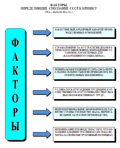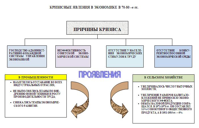 Советская экономика. Для экономического развития СССР, хозяйственного механизма страны в 60–80-е годы была характерна половинчатость и непоследовательность.Уже после ХХII съезда КПСС в практику хозяйствования стали внедряться рычаги управления, действовавшие только в условиях рыночных отношений (максимизация прибыли, самофинансирование собственного развития каждым предприятием без учёта интересов всех остальных и др.). Эту концепцию поддерживали так называемые «товарники». Им противостояли «антитоварники», утверждавшие, что рыночные отношения противоречат социалистическим принципам. В ходе полемики «товарников» и «антитоварников» победили «товарники». Их победа была закреплена поддержкой их позиции Председателем Совета Министров СССР А.Н. Косыгиным.