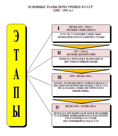 1. Охарактеризуйте основные этапы перестройки и их итоги.