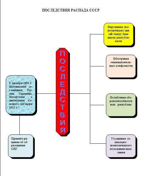 Было разрушено великое государство площадью 22 млн. кв. км. Беловежское соглашение не имело под собой никаких правовых оснований. Президент РФ В.В. Путин расценил разрушение Советского союза как величайшую геополитическую трагедию ХХ века. Нигде в мире руководители добровольно не разрушали собственную страну. Даже Германию, которую в 1945 г. должны были расчленить за то, что она начала две мировые войны, в итоге решили сохранить целой.