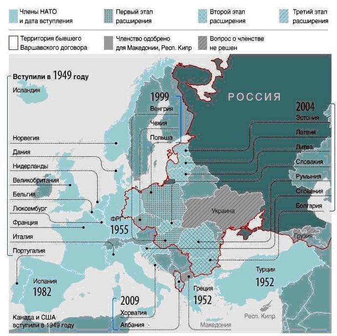 Однако США и страны Западной Европы без оглядки на российскую власть проводили курс на расширение НАТО на Восток, в результате чего военные базы Северно-Атлантического альянса максимально приблизились к границам России. На Западе откровенно игнорировали интересы РФ на постсоветском пространстве (Приднестровье, Кавказ, Средняя Азия, Крым), развязали вопреки позиции ООН и РФ войну против Югославии (1999 г.), организовали свержение президента СФРЮ С. Милошевича, который позднее умер в тюрьме Гаагского трибунала.