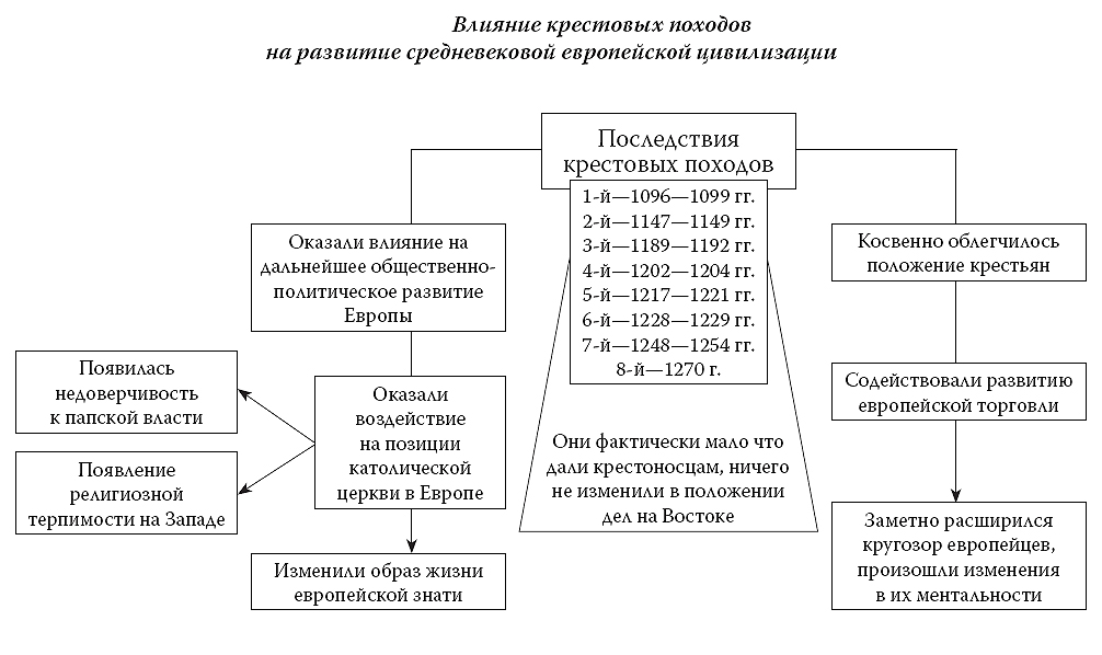 д) произошли изменения в ментальности европейцев. Крестовые походы сопровождались значительными людскими потерями. В то же время христиане познакомились с более развитой восточной культурой и многое переняли. Они стали более терпимы к другим религиям и народам, смогли критически осмыслить и саму христианскую религию. Кроме того, после крестовых походов Европа стала более цивилизованной. Стало ослабевать крепостное право. Нараставшее сопротивление со стороны мусульман обратило взоры католической Европы на другой Восток – прибалтийские и русские земли, заселенные язычниками и православными христианами;