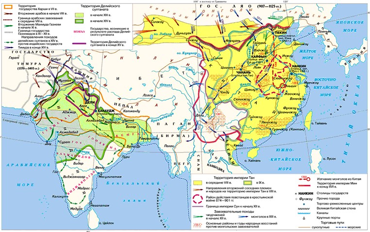 Во-первых, продолжалось циклическое повторение периодов становления, усиления и краха власти и социума. Так, только в раннем Средневековье на территории Индии было более двух десятков государств, которые распадались, затем снова формировались. Крупным образованием становится Делийский султанат, объединивший в рамках мусульманского государства в XIII в. значительную часть Индии. Несмотря на распространение ислама, основная масса населения осталась верной индуизму. Борьба индуизма и ислама, несовместимость жизненных обычаев, норм поведения, определяемых этими религиями, вела к ослаблению султаната.