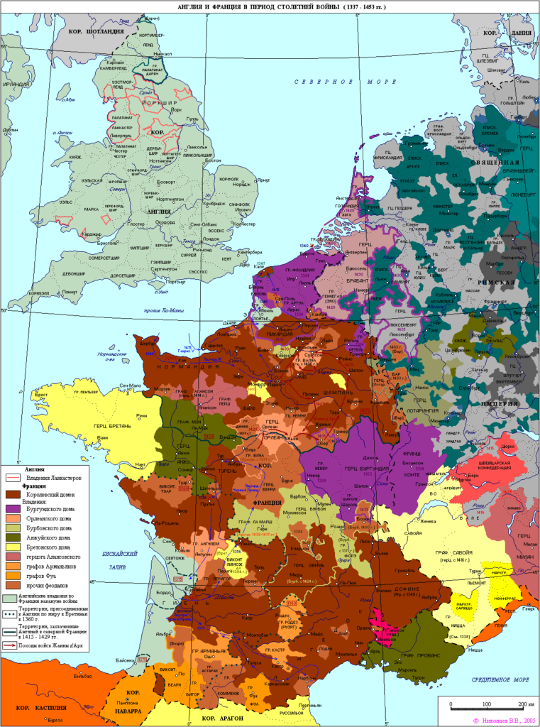 Межгосударственные войны. В ходе Столетней войны 1337–1453 гг. между Англией и Францией борьбу французского народа против оккупантов возглавила простая крестьянская девушка Жанна д’ Арк, вставшая во главе войск (попала в плен и сожжена англичанами). В результате Реконкисты (отвоевание на Пиренеях христианских территорий) на месте мусульманских владений сложились два королевства – Испания и Португалия.