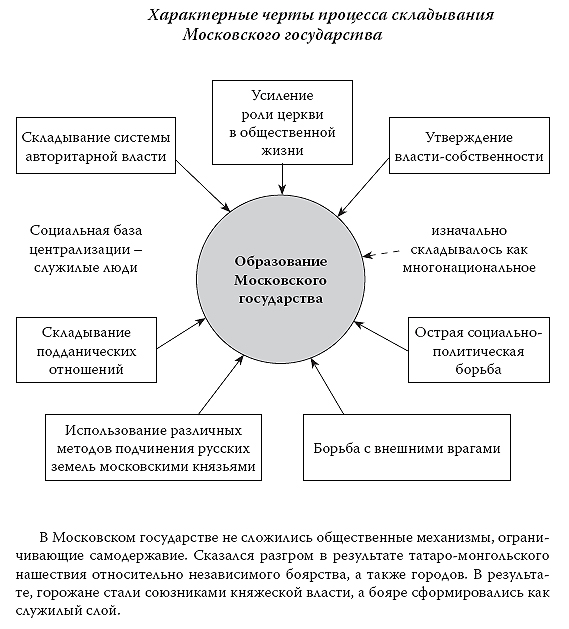 Формирование единого московского корня сопровождалось усилением пассионарности русского этноса, что привело к становлению великорусской народности со своим языком и культурными традициями. В то же время следует констатировать, что Московская Русь (в дальнейшем – Россия) вставала на ноги в специфических условиях складывания крепостнических основ общественного строя, сословно-корпоративной структуры, более близких к восточному типу цивилизационного развития, чем к европейскому (где шли процессы классообразования, Возрождения и Реформации, перехода к ранним буржуазным отношениям).