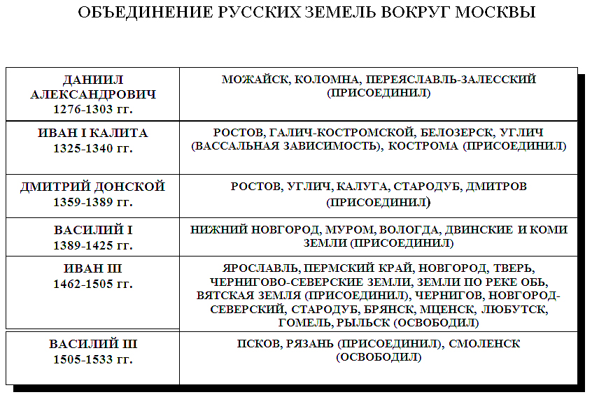 Объединение княжеств Северо-Восточной Руси вокруг Москвы. Непосредственный процесс становления единого Русского государства, начавшийся в конце XIII в., завершил свое действие в первой половине XVI в.