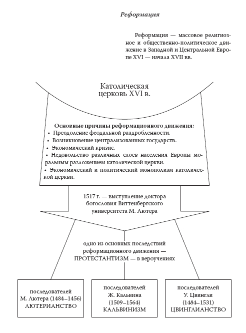 Родиной Реформации стала Германия, раздробленная на множество мелких княжеств, в дела которых папа римский вмешивался особенно бесцеремонно. Началом Реформации считают события 1517 г., когда доктор богословия Мартин Лютер выступил со своими 95 тезисами против раздачи индульгенций. Его длительный поединок с католической церковью способствовал быстрому распространению реформационных идей в Швейцарии, Нидерландах, Франции, Англии, Италии. К тому же в Германии Реформация сопровождалась беспрецедентной Крестьянской войной Томаса Мюнцера (1524–1525). Последний главные задачи Реформации видел в осуществлении социально-политического освобождения народа от эксплуатации и в удовлетворении его повседневных нужд. Своих новых теоретиков Реформация обрела в Швейцарии, где возник второй крупнейший ее центр во главе с «женевским папой» – Жаном Кальвином.