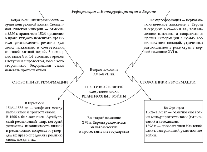 В XVI в. в Германии и Франции вспыхнули гражданские войны между сторонниками и противниками Реформации. К примеру, во Франции 2 августа 1572 г., в ночь накануне дня Святого Варфоломея, по приказу короля Карла IX католики уничтожили две тысячи кальвинистов (гугенотов; за две недели было перебито 30 тыс. протестантов). В ходе Тридцатилетней войны (1618–1648) была опустошена Германия (население сократилось с 21 до 13 млн человек).