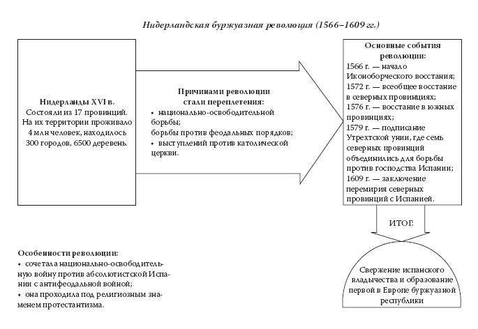 Он стремился по примеру Александра Македонского и римских цезарей к созданию универсальной монархии (его идеал – единство католического мира под его властью). Самый тяжелый удар по могуществу Испании был нанесен в результате победы первой европейской буржуазно-демократической революции в Нидерландах, ставшей результатом широкого национально-освободительного движения (1566–1609).