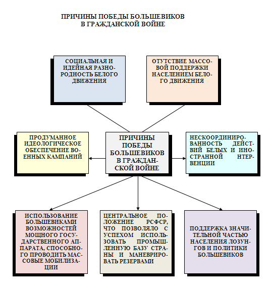 Одновременно необходимо признать, что победа большевиков позволила сохранить государственность и суверенитет России. Советская республика нашла приемлемые формы государственного устройства, объединяющего народы России.