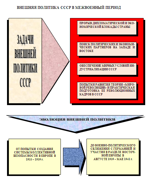 Советское правительство прилагало большие усилия к созданию системы коллективной безопасности на основе региональных соглашений о взаимной защите стран от агрессии со стороны Германии и Японии. В 1934 г. Советский Союз вступил в Лигу Наций и сразу стал постоянным членом ее Совета. Крупным достижением явились договоры о взаимопомощи с Францией и Чехословакией, активные действия СССР в Лиге Наций и многое другое. Еще в июле 1933 г. 11 стран Европы и Азии подписали конвенцию об определении агрессии, предложенную СССР. В ней говорилось, что «никакие соображения политического, стратегического и экономического порядка… не смогут служить оправданием нападения». Однако создать систему коллективной безопасности не удалось. Польша в 1934 г. предпочла заключить Декларацию о ненападении и взаимопонимании с Германией. Англия в 1935 г. подписала с Германией военно-морское соглашение.